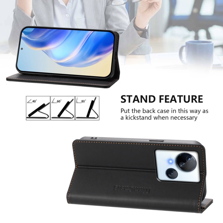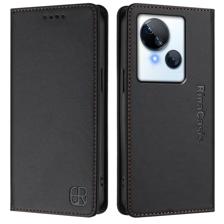 Funda de Cuero para Tecno Spark 10 5G Rc01 con Doble Pliegue y Succión Magnética Rfid (Negra)