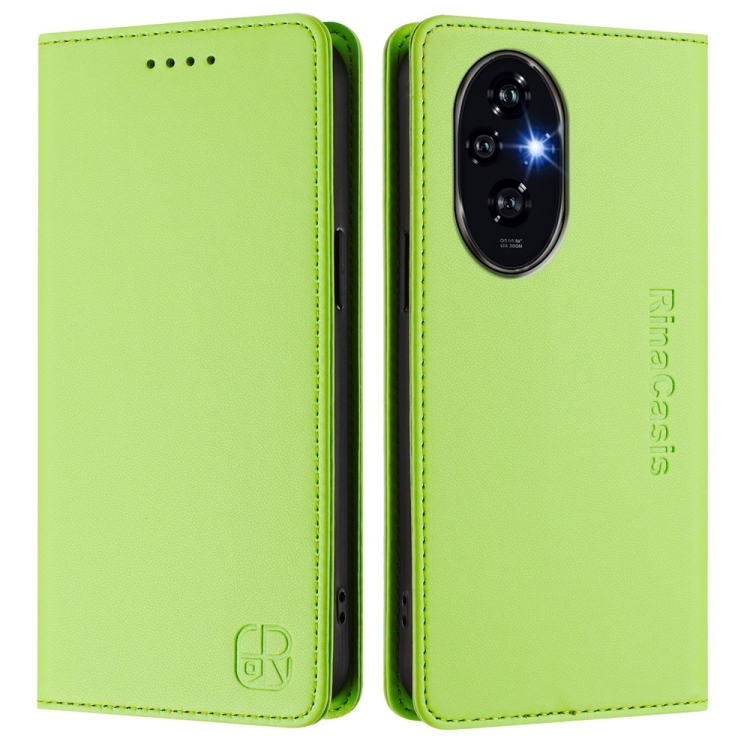 Funda de Cuero con Doble Pliegue y Succión Magnética Rfid para Honor 200 Pro Rc01 (Verde Hierba)