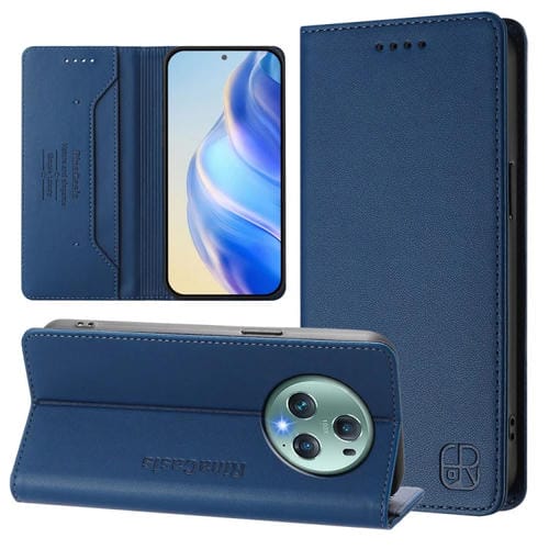 Funda de Cuero Rfid con Doble Pliegue y Succión Magnética para Honor Magic5 Pro Rc01 (Azul Oscuro)