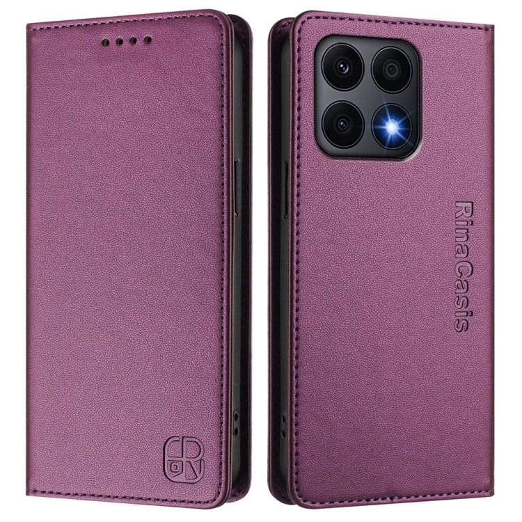Funda de Cuero Rfid con Doble Pliegue y Succión Magnética para Honor X8A Global Rc01 (Violeta)