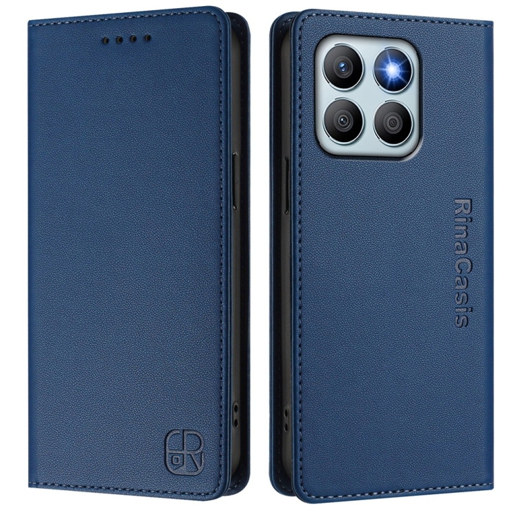 Funda de Cuero Rfid con Doble Pliegue y Succión Magnética para Honor X8B Global Rc01 (Azul Oscuro)
