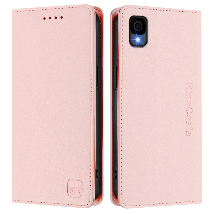 Funda de Cuero para Teléfono TCL 30Z/T602Dl Rc01 con Doble Pliegue y Succión Magnética Rfid (Rosa)