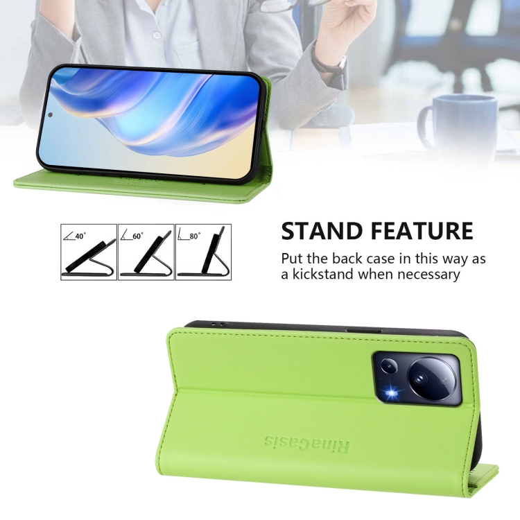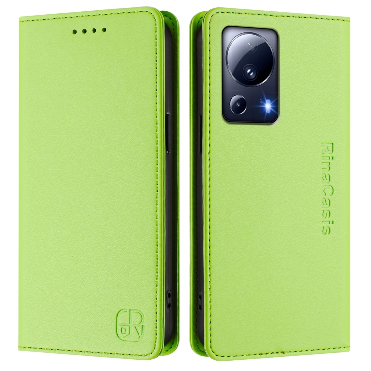 Funda de Cuero con Doble Pliegue y Succión Magnética Rfid para Xiaomi 13 Lite 5G/Civi 2 Rc01 (Verde Hierba)