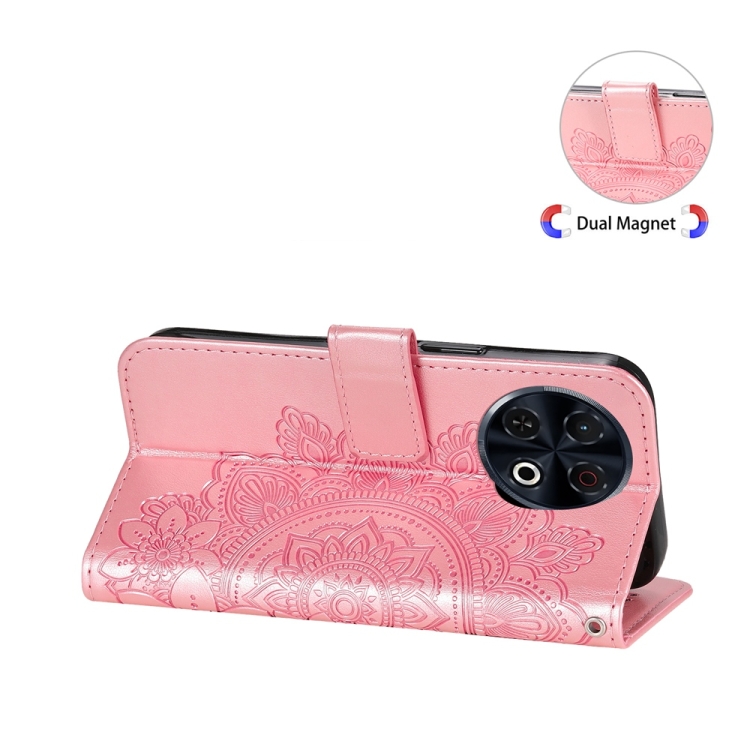 Funda de Cuero para Tecno Spark 30 Pro 4G con Estampado de Flores de Siete Pétalos (Oro Rosa)