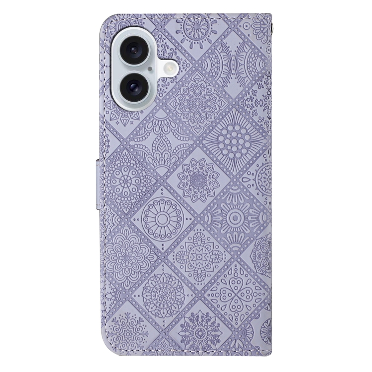 Funda de Cuero iPhone 16 Plus Estampado En Relieve Estilo Étnico (Morado)
