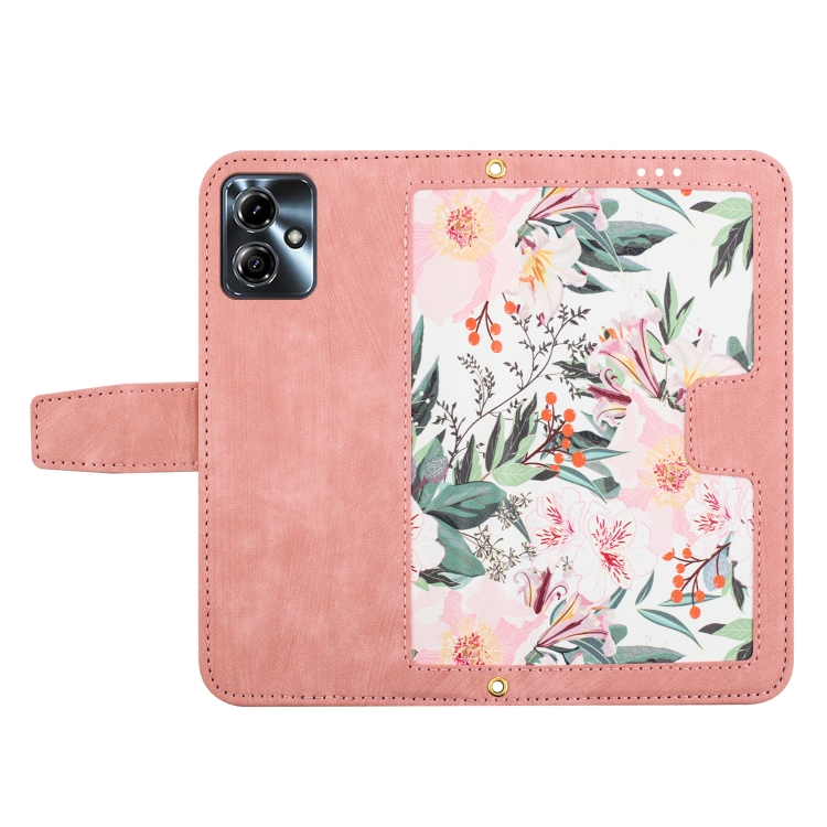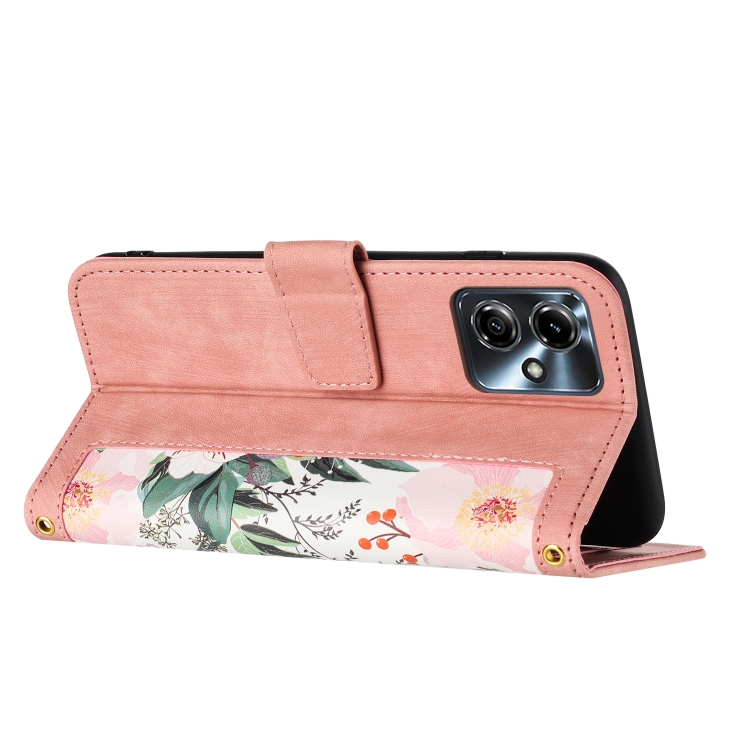 Funda de Cuero para Motorola Moto G54 con Estampado Floral y Cordón (Rosa)