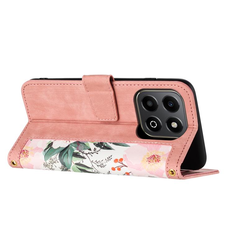 Funda de Cuero Honor 200 con Estampado Floral y Cordón (Rosa)