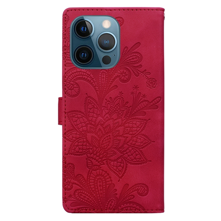Funda de Cuero con Hebilla Magnética y Encaje Floral para iPhone 12 Pro Max/13 Pro Max (Rojo)