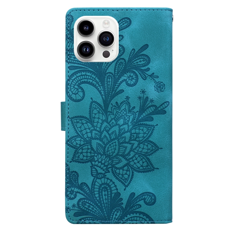 Funda de Cuero para iPhone 16 Pro con Hebilla Magnética y Encaje Floral (Verde)