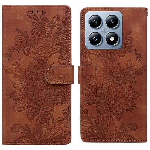 Funda de Cuero con Hebilla Magnética y Encaje Floral En Relieve para Xiaomi 14T Pro (Marrón)