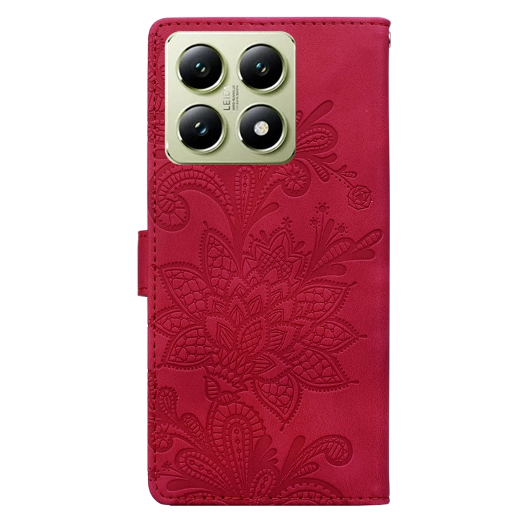 Funda De Cuero Con Hebilla Magnética Y Encaje Floral En Relieve Para Xiaomi 14T (Rojo)