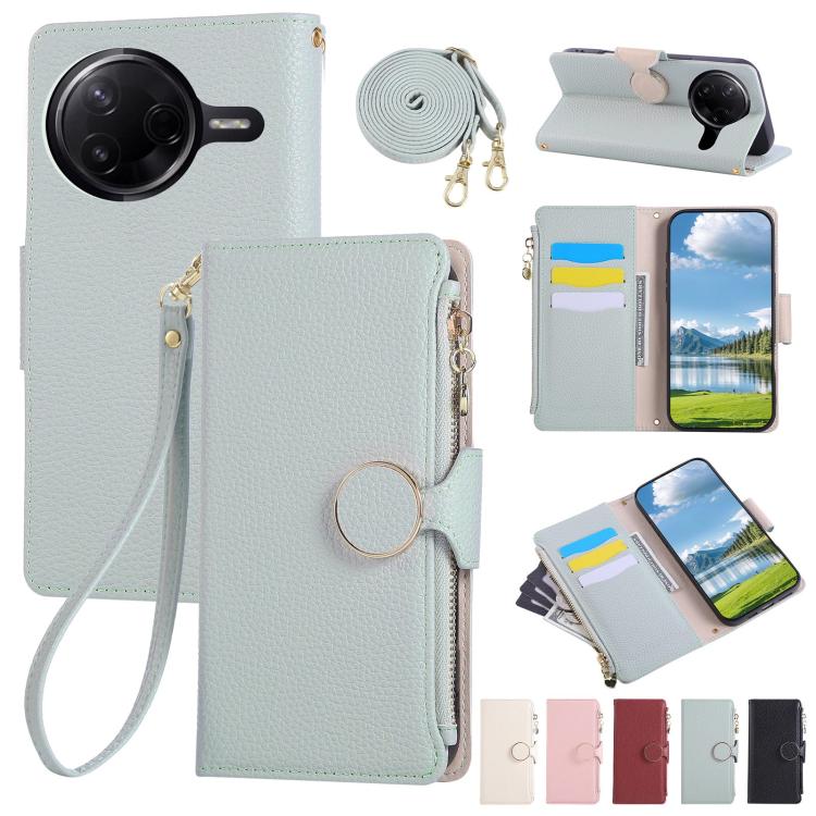 Funda de cuero con hebilla redonda y cremallera para Redmi K80 Pro / Poco F7 Ultra, con correa cruzada (azul cielo)