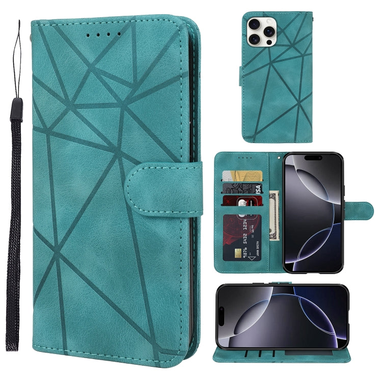 Funda de Cuero iPhone 16 Pro Max Líneas Geométricas Tacto Agradable (Verde)