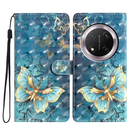 Funda de Cuero para Honor X9C 5G con Patrón 3D Mariposa (Negro)