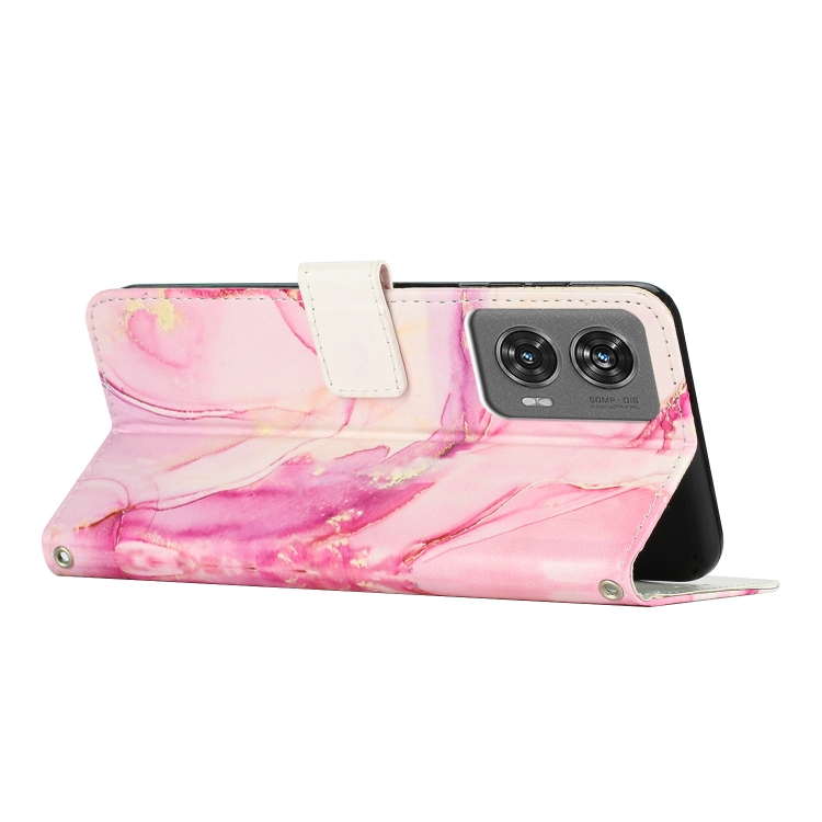 Funda de Cuero con Patrón Mármol para Motorola Edge 2024 5G (Oro Rosa)
