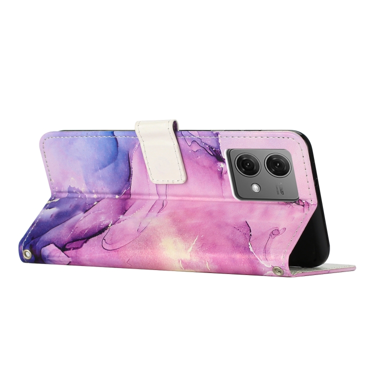 Funda de Cuero Motorola Edge 40 Neo con Patrón de Mármol Pintado (Morado)
