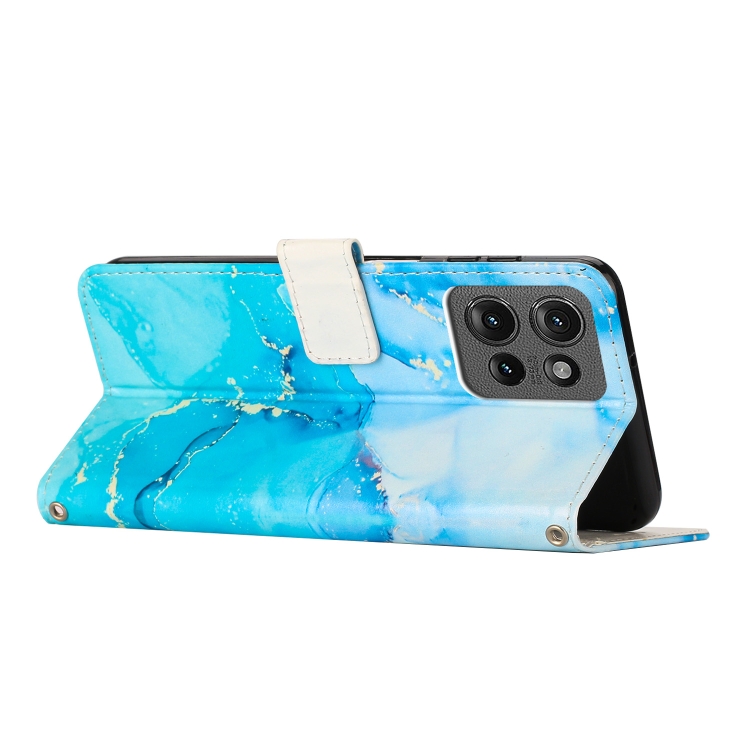 Funda de Cuero con Patrón de Mármol para Motorola Edge 50 Pro y Edge 50 (Azul y Verde)