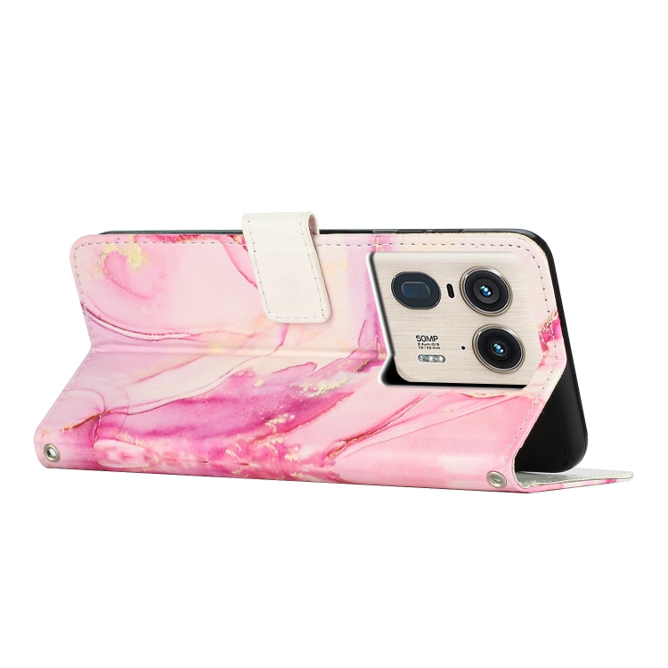 Funda de Cuero con Patrón de Mármol para Motorola Edge 50 Ultra (Oro Rosa)