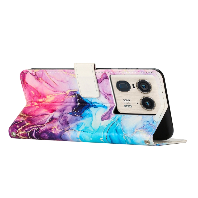 Funda de Cuero para Motorola Edge 50 Ultra con Patrón de Mármol Pintado (Rosa y Morado)