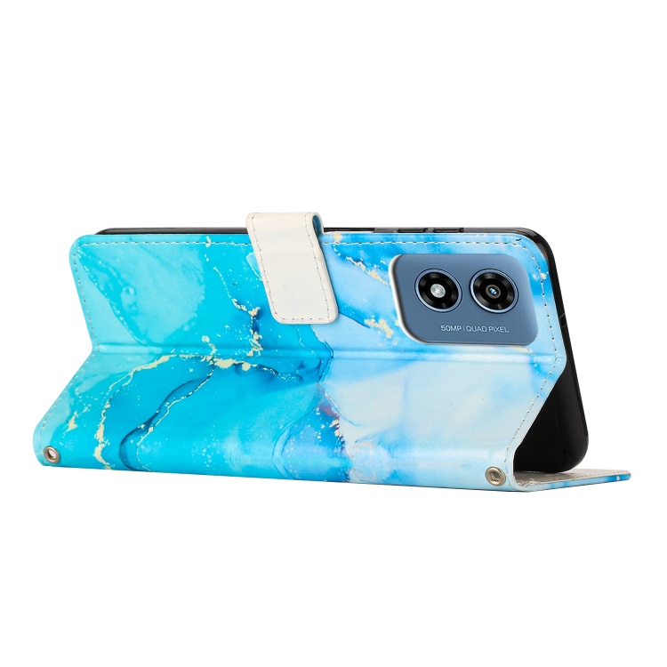 Funda de Cuero con Patrón Mármol para Motorola Moto G Play 4G (2024) (Azul y Verde)