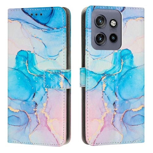 Funda de Cuero con Patrón Mármol para Motorola Moto S50 5G y Edge 50 Neo (Rosa y Verde)