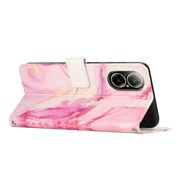 Funda de Cuero con Patrón de Mármol Pintado para Teléfono Realme C67 (Oro Rosa)