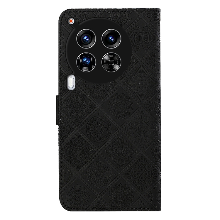 Funda de Cuero para Tecno Camon 30 Premier con Patrón en Relieve Estilo Étnico (Negro)