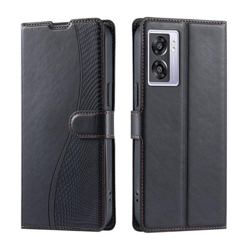 Funda de Cuero con Puntos Ultradelgada para Teléfono Oppo A77 5G/A57E 4G con Voltaje Global (Negra)