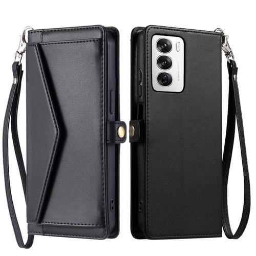 Funda de Cuero con Ranura para Múltiples Tarjetas y Billetera Global para Oppo Reno12 5G con Cordón (Negro)