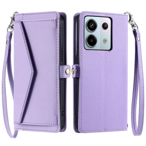Funda de Cuero con Ranura para Múltiples Tarjetas y Billetera Global para Redmi Note 13 Pro 5G con Cordón (Morado)