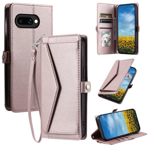 Funda de Cuero para Google Pixel 9A con Ranura para Tarjetas y Cordón (Oro Rosa)