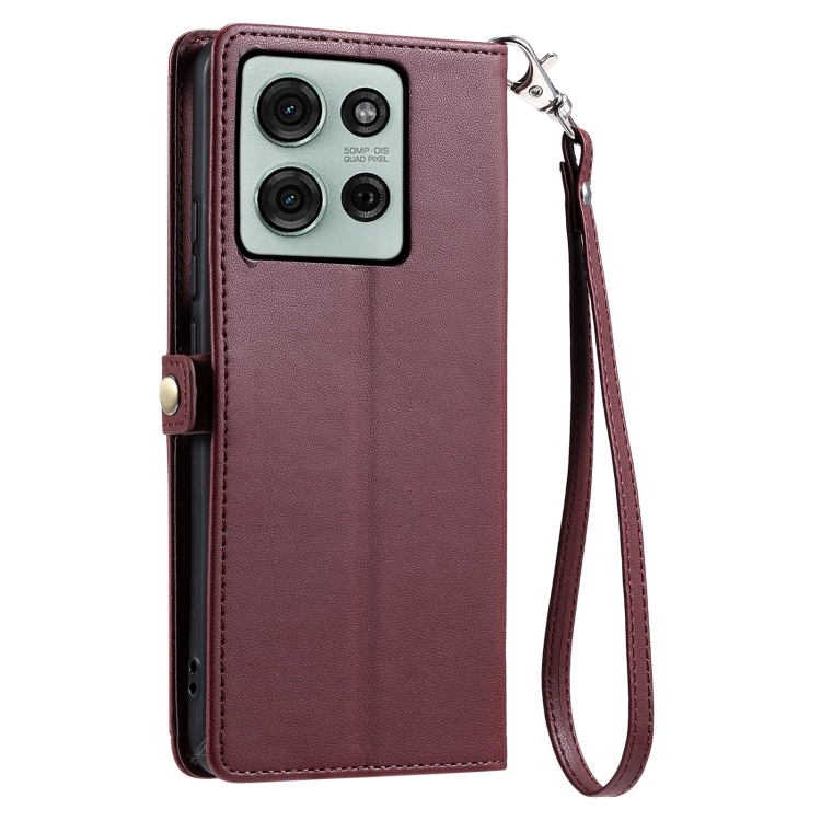 Funda de Cuero para Motorola Moto G75 5G con Ranura para Tarjetas y Cordón (Rojo Vino)