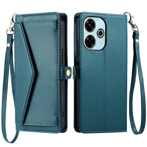 Funda de Cuero con Ranura para Múltiples Tarjetas y Cordón para Redmi 13 4G (Verde)