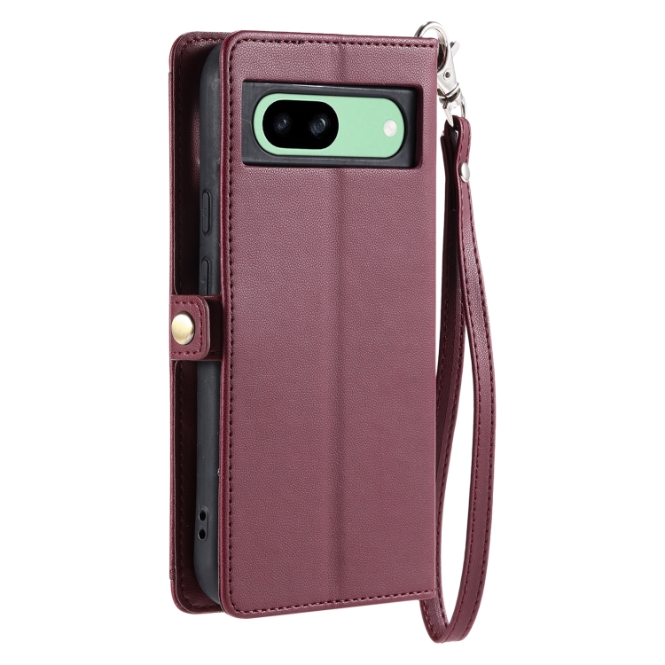 Funda de Cuero para Google Pixel 8A con Ranura para Tarjetas y Billetera (Rojo Vino)