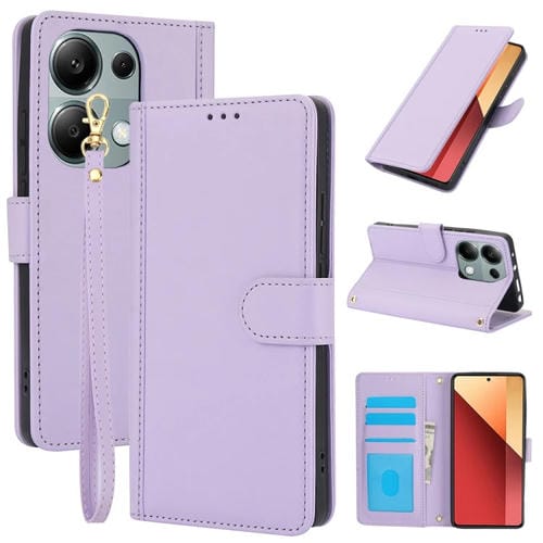 Funda de Cuero con Ranuras para Tarjetas y Tacto de Piel Global para Redmi Note 13 Pro 5G/Poco X6 5G con Cordón Doble (Morado)