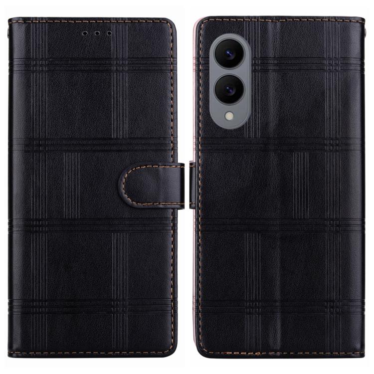 Funda de cuero con relieve a cuadros para Samsung Galaxy S25 Edge 5G (negra)