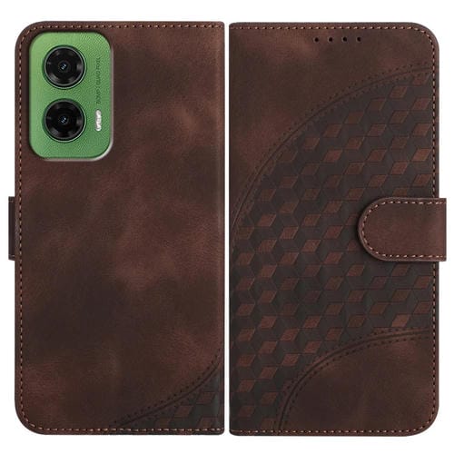 Funda de Cuero con Relieve de Cabeza de Elefante para Motorola Moto G35 Yx0060 con Cordón (Café)