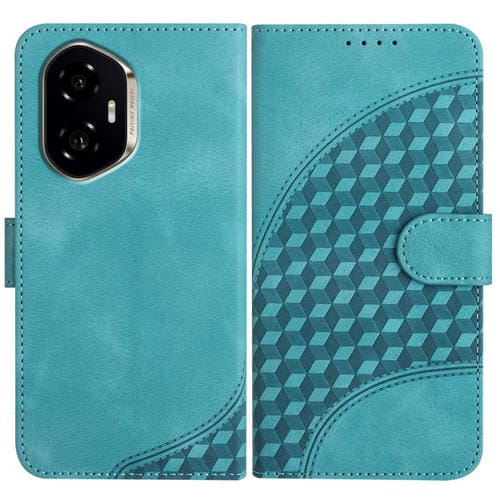 Funda de Cuero con Relieve Cabeza de Elefante para Honor 300 con Cordón (Azul Claro)