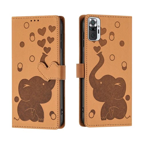 Funda de Cuero con Relieve de Elefante de Dibujos Animados para Redmi Note 10 Pro (Amarillo)
