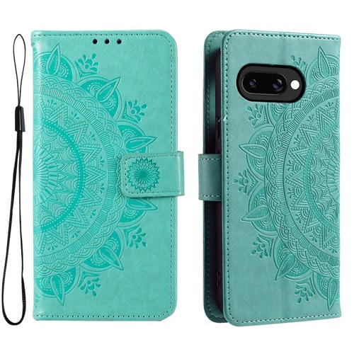 Funda de Cuero con Estampado de Flores y Cordón para Google Pixel 9A (Verde)