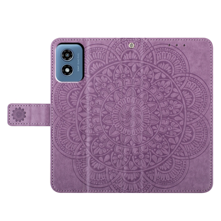 Funda de Piel con Relieve Floral para Motorola Moto G Play 2024 (Morado)