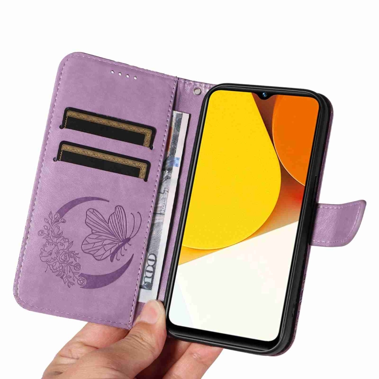 Funda de Cuero con Relieve de Mariposa En Forma de Cola de Golondrina para Vivo Y35/Y22S/Y22 (Morado)