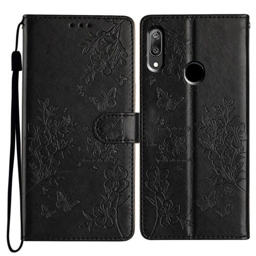 - 1x Funda de Cuero con Relieve Mariposa y Flor para Huawei P Smart Z (Negro)