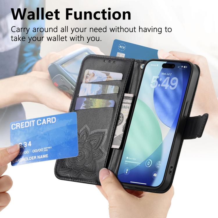 Funda de cuero con relieve de mariposa y flor para iPhone Air (negra)