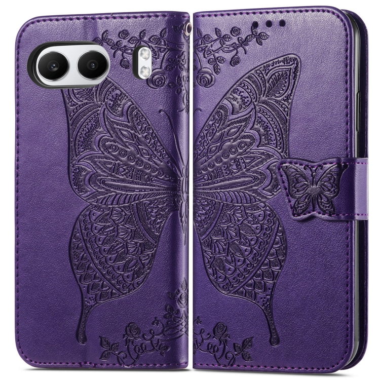 Funda de Cuero con Relieve Mariposa y Flor para OnePlus Nord 4 (Morado Oscuro)