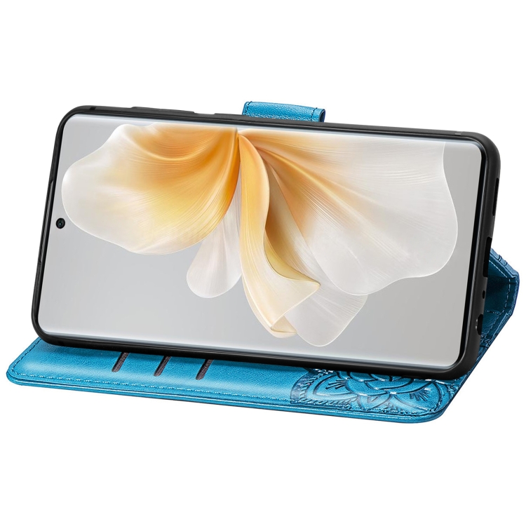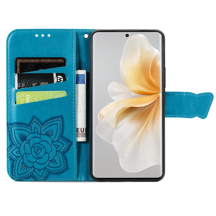 Funda de Cuero para TCL 50 5G con Relieve de Mariposa y Flor (Azul)