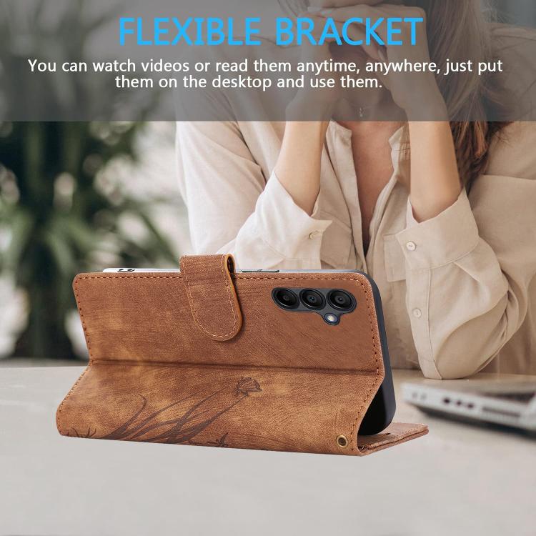 Funda para Samsung Galaxy A16 5G Cuero Relieve Mariposa y Orquídea (Marrón)
