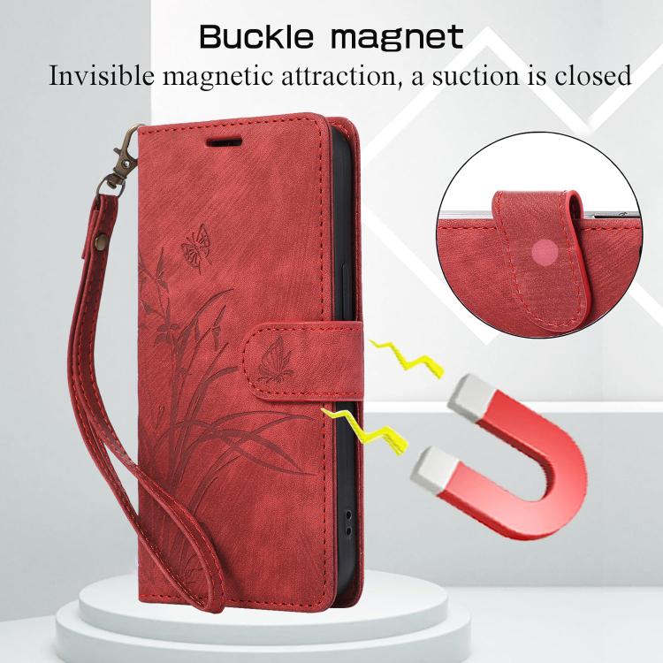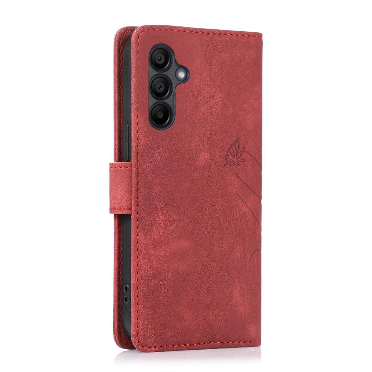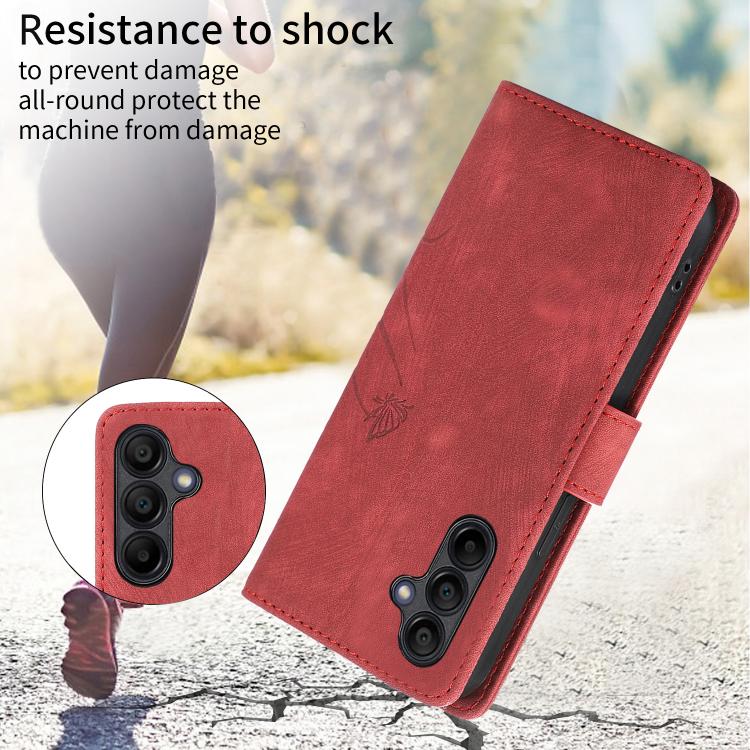 Funda de Cuero Samsung Galaxy A16 5G con Relieve Mariposa y Orquídea (Roja)
