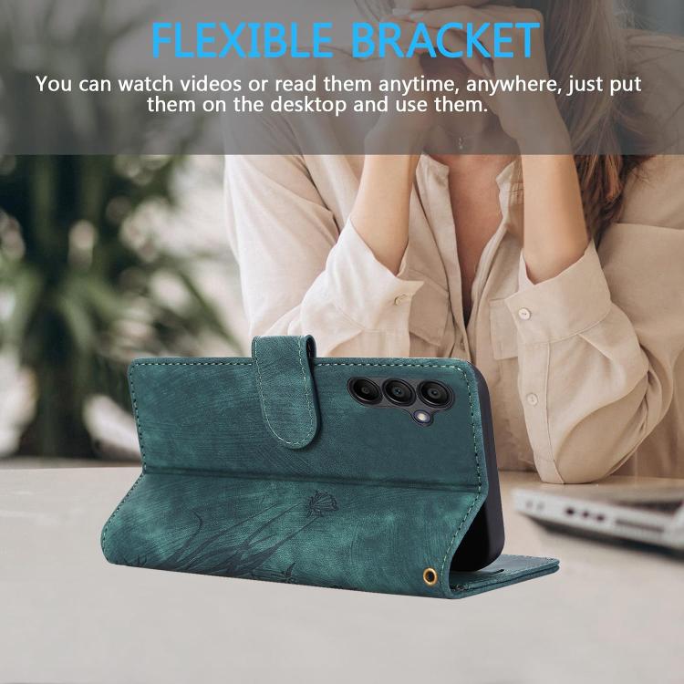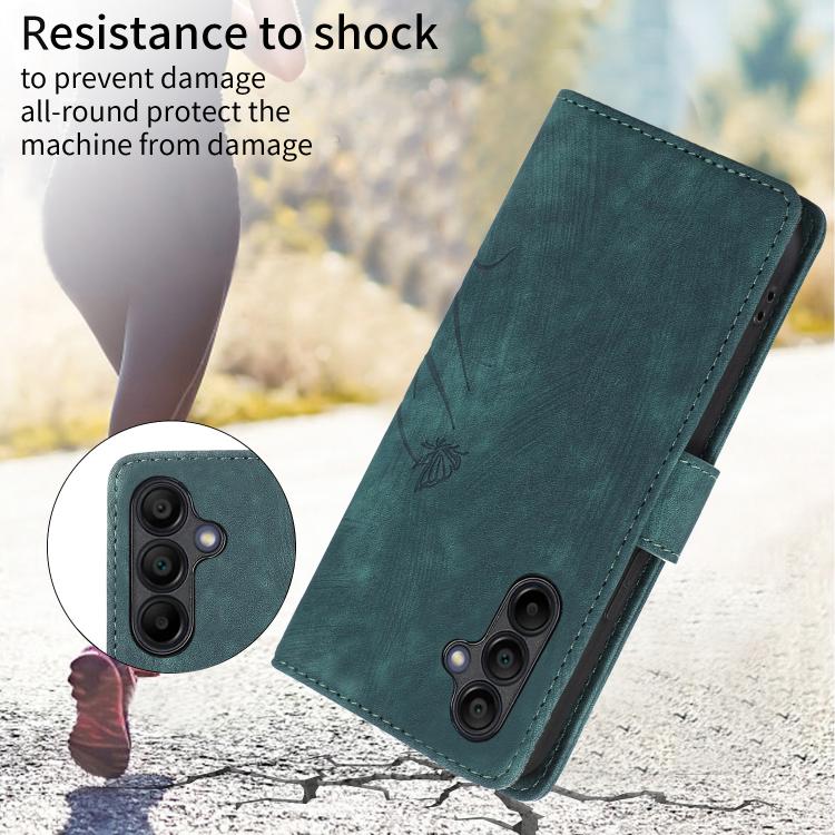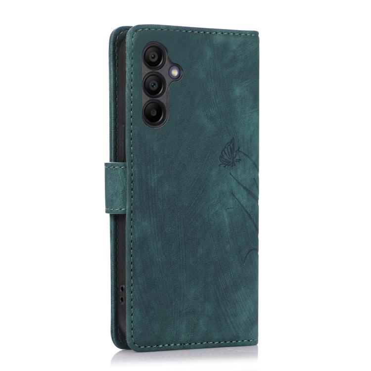 Funda de Cuero Samsung Galaxy A16 5G Relieve Mariposa Orquídea (Verde)