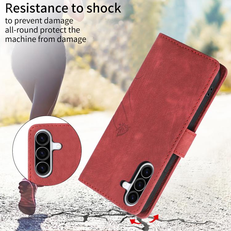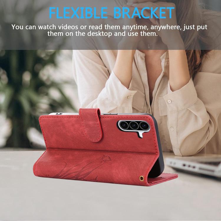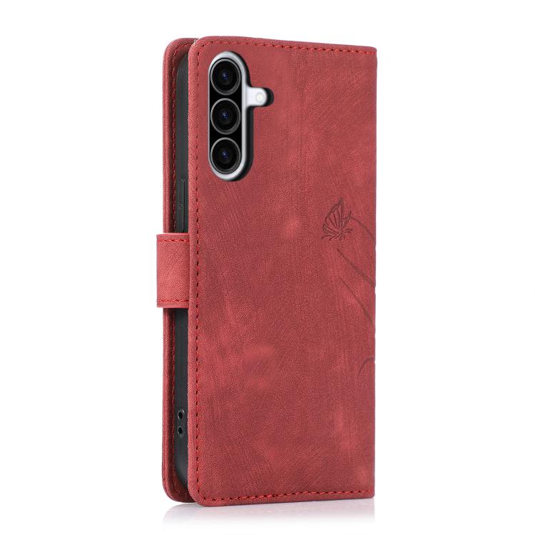 Funda de Cuero Samsung Galaxy A36 5G con Relieve de Mariposa y Orquídea (Rojo)